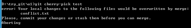working-dir就是平时我们操作的地方,在这里我们进行添加、删除、修改文件等各种操作,以及merge/rebase/cherry-pick,都是在working-dir上进行的。所以在做这些操作之前,git都要求你working-dir没有任何修改。否则会报类似的错误: