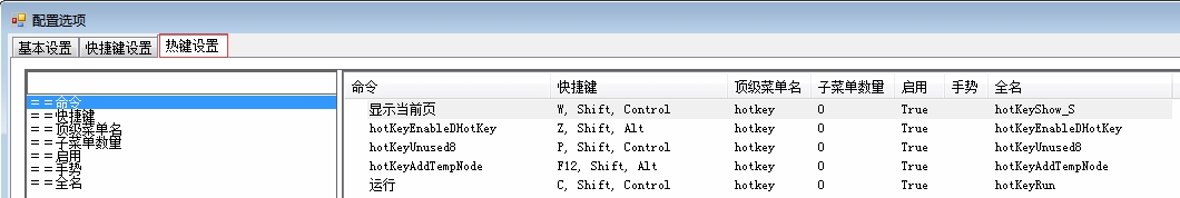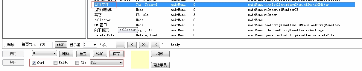 选择某个需要配置的命令,在下面选择需要配置的按键以及ctrl/shift/alt组合。注意,配置完成后需要点击保存按钮才能生效!