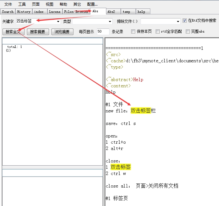 在所有文章中搜索全部文本内容。see 大纲搜索